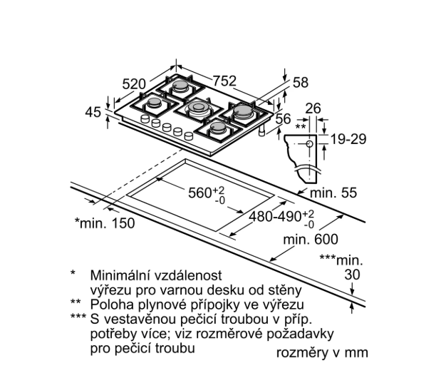 Požadovaná velikost otvoru pro instalaci (v x š x h)
