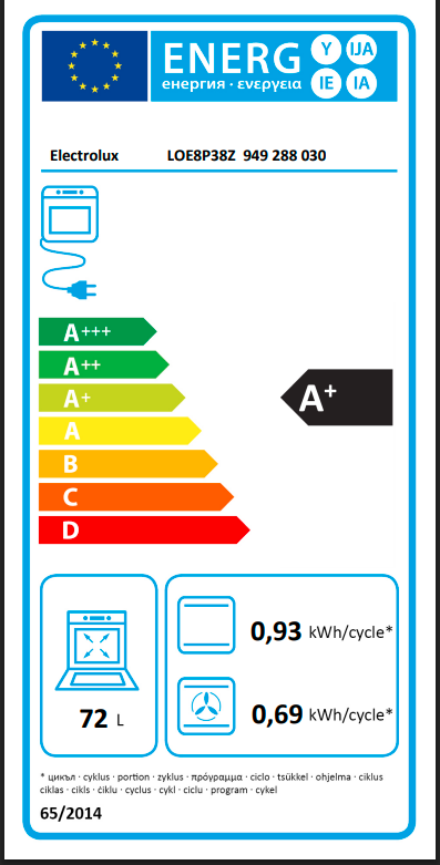 Spotřeba energie se standardním zatížením (kWh/cyklus): 0.93