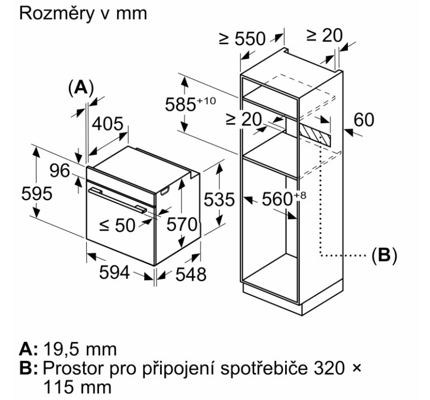 rozměry niky (V x Š x H): 585 mm - 595 mm x 560 mm - 568 mm x 550 mm